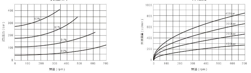 下列表為排量900CC馬達(dá),在工作液采用礦物油,粘度40CST,油溫50°工作時(shí)的典型特性曲線