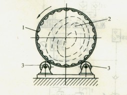 在造紙行業(yè)中,原木進(jìn)廠后需在剝皮機(jī)上將樹皮剝?nèi)ィ瓿蓚淞瞎ば?,目前普遍采用圓筒式剝皮機(jī)。圓筒式剝皮機(jī)的工作原理見圖4.2-5所示。圖中1為圓筒,2為原木,3為支承及傳動裝置。當(dāng)傳動裝置驅(qū)動圓筒旋轉(zhuǎn)時,筒中的原木也隨著圓筒轉(zhuǎn)動。當(dāng)原木被提升到一定的高度后,從某一位置跌落下來時,原木上的樹皮受到?jīng)_擊、擠壓和剪切力。當(dāng)這些力的和力超過樹皮與木質(zhì)間的結(jié)合力時,樹皮就被剝離。