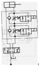 圖3 .2-5a,b的回路一個行程只有兩種速度,如在圖3.2- 5b的基礎(chǔ)上再加一組換向閥與單向節(jié)流閥,則一個行程可以改變?nèi)N速度,如圖3.2- 5c所示。