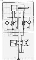 另一種接入節(jié)流閥以改變液壓缸運(yùn)動速度的辦法是在液壓缸行程末端有兩個引出口,如圖3 .2-6所示,當(dāng)活塞左行把口2關(guān)閉時,油通過口1經(jīng)節(jié)流閥5流回油箱,從而使液壓缸減速。同樣,當(dāng)右行而關(guān)閉出油口3時,節(jié)流閥6起作用而使液壓缸減速。