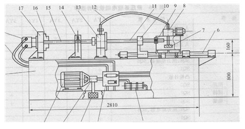 圖2-16深孔鉆床主機(jī)結(jié)構(gòu)示意圖