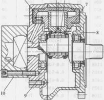 7-卡環(huán);8-前殼體;9-后殼體;10-通油盤(pán);11-配流盤(pán)