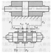 圖6—40c為四邊滑閥控制式,它有四個(gè)控制邊。xs1和xs2是控制壓力油進(jìn)入液壓缸左、右油腔的,xs3和xs4是控制左、右油腔通向油箱的。當(dāng)滑閥移動(dòng)時(shí),xs1和xs4增大,xs1和xs4減小,或相反,這樣就控制了進(jìn)入液壓缸左、右腔的油液壓力和流量,從而控制了液壓缸的運(yùn)動(dòng)速度和方向。
