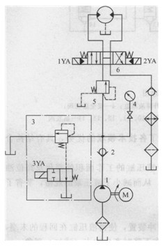 當(dāng)電磁鐵1YA、3YA通電時(shí),電磁溢流閥中的二位二通換向閥和換向閥6均切換至左位,液壓泵的壓力油經(jīng)單向閥2、順序閥5和換向閥6進(jìn)入液壓馬達(dá)左腔,驅(qū)動(dòng)液壓馬達(dá)轉(zhuǎn)動(dòng),液壓馬達(dá)右腔經(jīng)閥6、閥8和冷卻器8及過濾器10回油;當(dāng)電磁鐵2 YA、3YA通電時(shí),換向閥6切換至右位,泵1的壓力油經(jīng)閥2、閥5和閥6進(jìn)入液壓馬達(dá)右腔,驅(qū)動(dòng)液壓馬達(dá)反向轉(zhuǎn)動(dòng),馬達(dá)左腔經(jīng)閥6、閥8和冷卻器8及過濾器10回油;當(dāng)所有電磁鐵均斷電時(shí),二位二通換向閥復(fù)至右位,換向閥6復(fù)至中位,液壓泵可通過閥6的中位卸荷,如果換向閥6復(fù)位失靈,液壓泵也可以通過電磁溢流閥3卸荷,不致使液壓馬達(dá)出現(xiàn)停止誤動(dòng)作(繼續(xù)旋 轉(zhuǎn)),實(shí)現(xiàn)雙重保護(hù)。