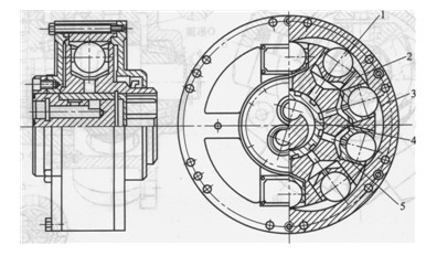圖4滾輪傳力式內(nèi)曲線馬達(dá)的結(jié)構(gòu)