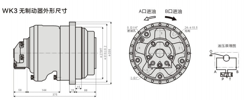 (1)、WK液壓傳動裝置允許在高背壓下工作。在連續(xù)工作是,使用背壓10MPA.