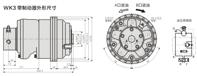 (5)、液壓傳動裝置均可雙向旋轉(zhuǎn),具體轉(zhuǎn)向見附圖。如用戶要求與圖示轉(zhuǎn)向相反,請在訂貨時注明。